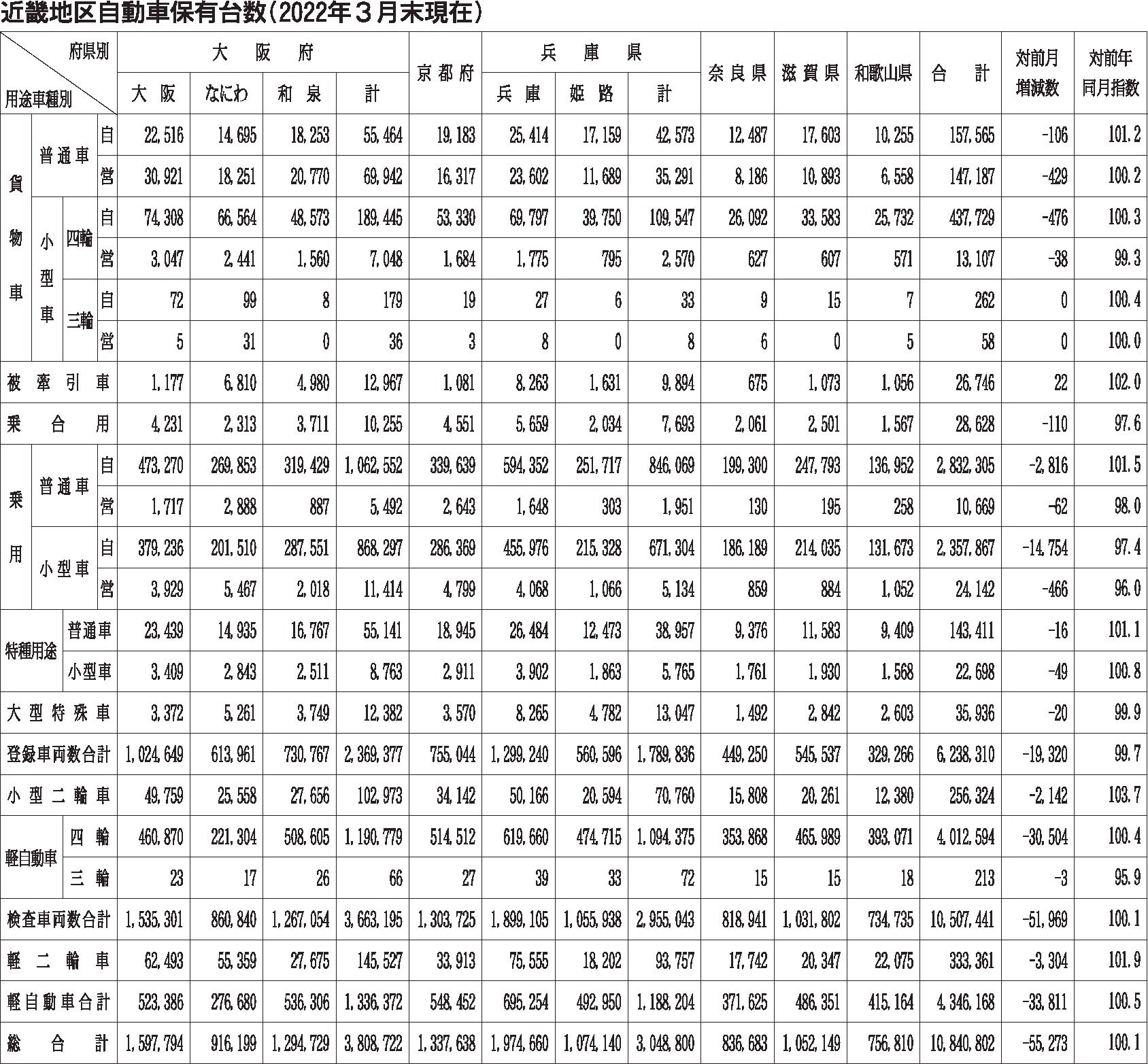 〈近畿地区自動車保有台数(2022年3月末現在)〉