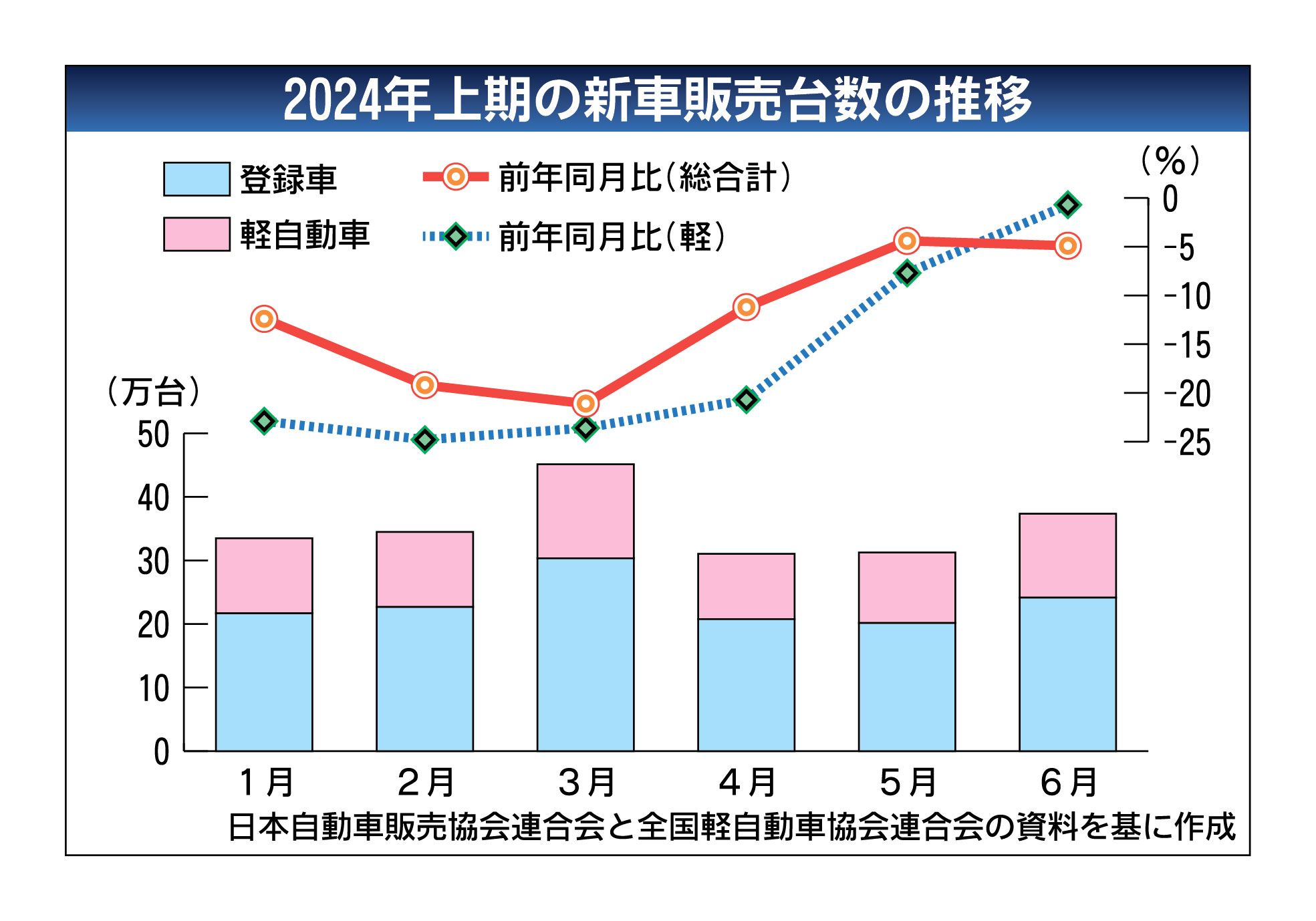 今夏以降の販売回復を見込んでいる新車ディーラーが増えている。日本自動車販売協会連合会(自販連、加藤敏彦会長)と全国軽自動車協会連合会(全軽自協、赤間俊一会長)が1日に公表した2024年上期(1~6月)の新車販売台数は、前年同期比13.2%...