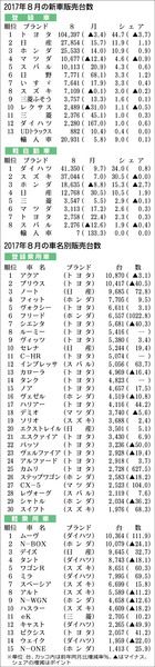 【2017年8月の新車/車名別販売台数】