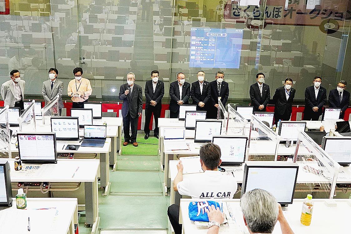 【山形】JU山形(鑓水孝理事長)は18日、山形県天童市の常設中古車オークション(AA)会場で「さくらんぼジャンボAA」を開催した=写真。出品台数は目標の800台を超える825台を集め、競りは活況を呈した。 会場には東北各県のJU理事長をは...