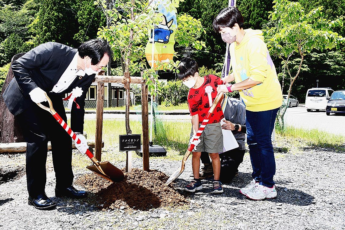 トヨタカローラ静岡(堀章弘社長)は12日、静岡市葵区の梅ヶ島地区で桜の植樹とタイムカプセル収納式を執り行った。今年3~5月の3カ月間、低排出ガス車の新車を購入したユーザーの中から抽選で選ばれた家族17組64人が参加。ソメイヨシノの苗木20...