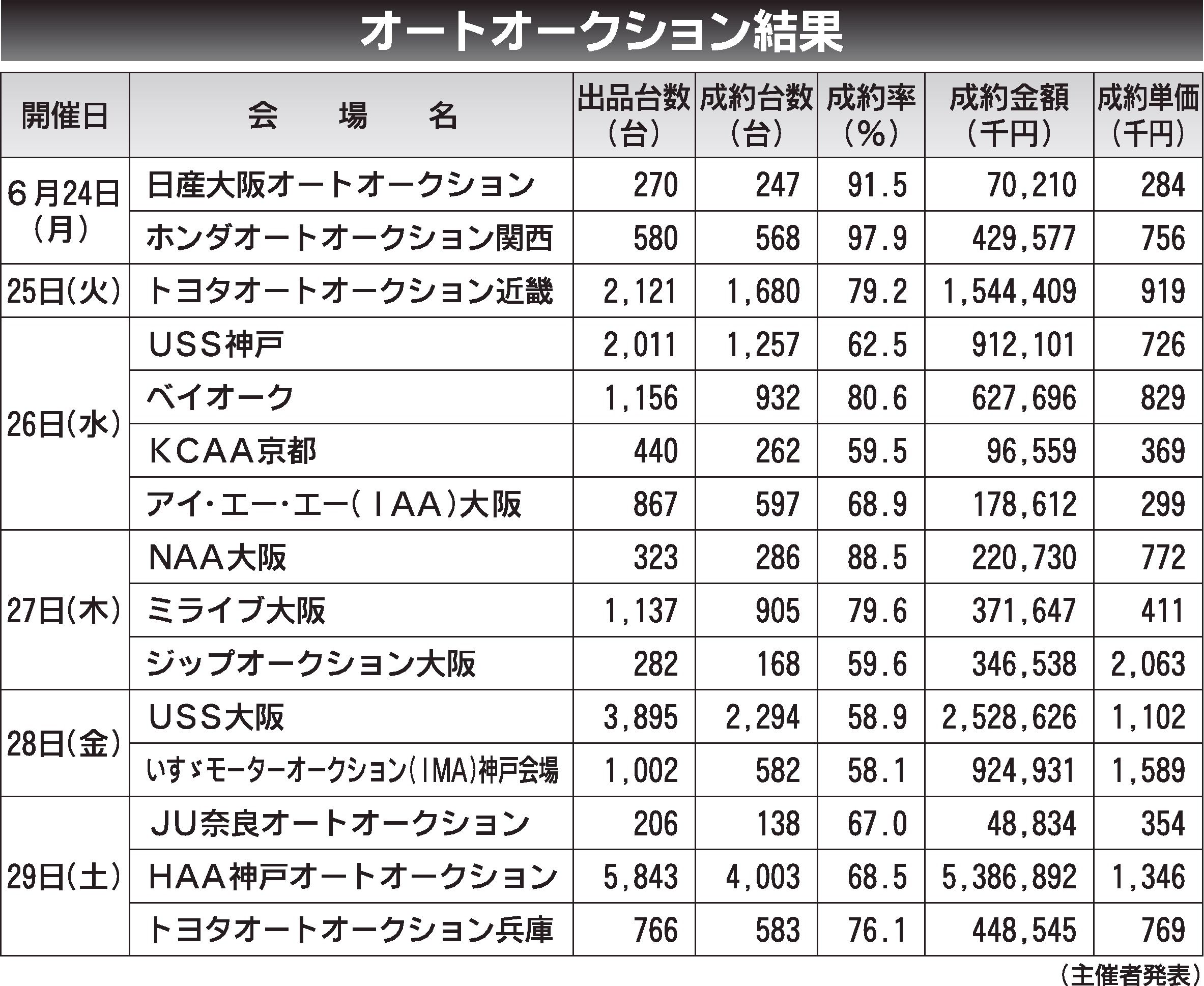 〈オートオークション結果〉近畿地区 2024/6/24~29