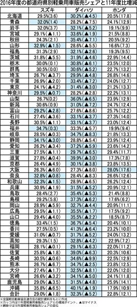 都道府県別軽シェア、新型N―BOX発売で“2強体制”大きく変化
