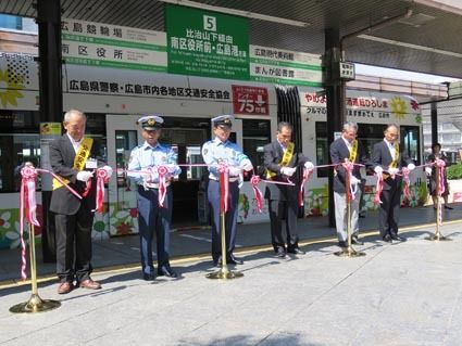 秋の全国交通安全運動に先駆けて、今年もひろでん(広島電鉄)に交通安全のラッピングが施された。車体に花のモチーフとともに『やめよう!飲酒運転ひろしま~クルマの人に酒を飲ますまぁでぇ~広島市』のスローガンが描かれ、市内を走りながら交通安全を訴...