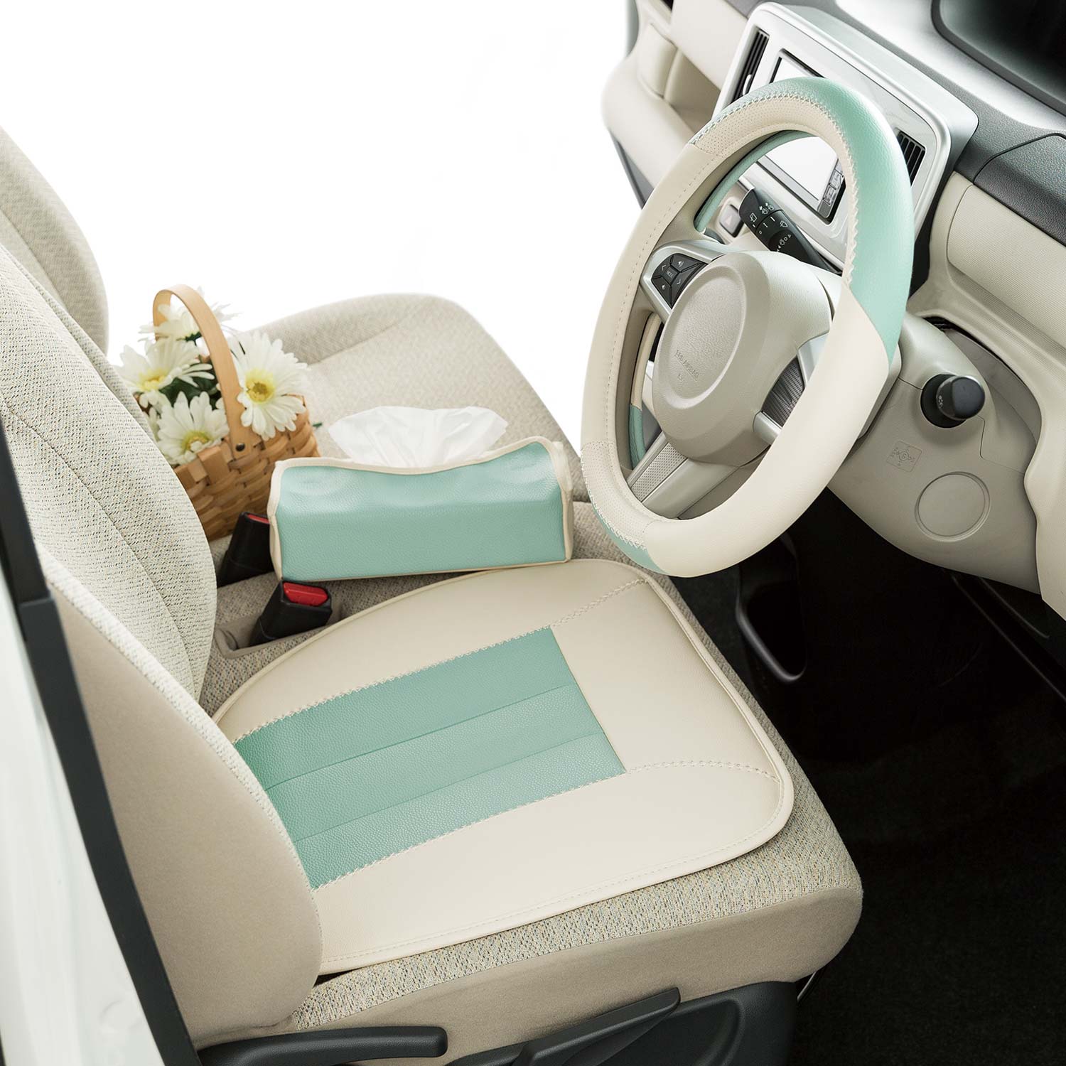 女性に人気の車種の色合いをイメージした車内インテリア用品。抗菌防臭加工の素材を使用し、クッションやシートベルトパッド、ハンドルカバー、ティッシュカバーをラインナップ。女性のユーザーが選びやすいカラー、デザインにした。一つひとつの製品をユーザーの目線で考えて企画し、新たなユーザー層の開拓や売り場の活性化などにつなげる魅力ある製品づくりに注力する企業姿勢も評価した。