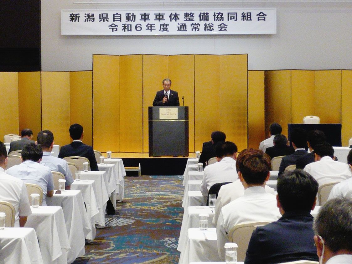 【新潟】新潟県自動車車体整備協同組合(住川勝則理事長)は、新潟市内で「令和6年度通常総会」を開催した=写真。2023年度の事業報告と決算関係書類の承認を行ったほか、24年度の事業計画案および収支予算案を審議し、承認した。 住川理事長はあい...