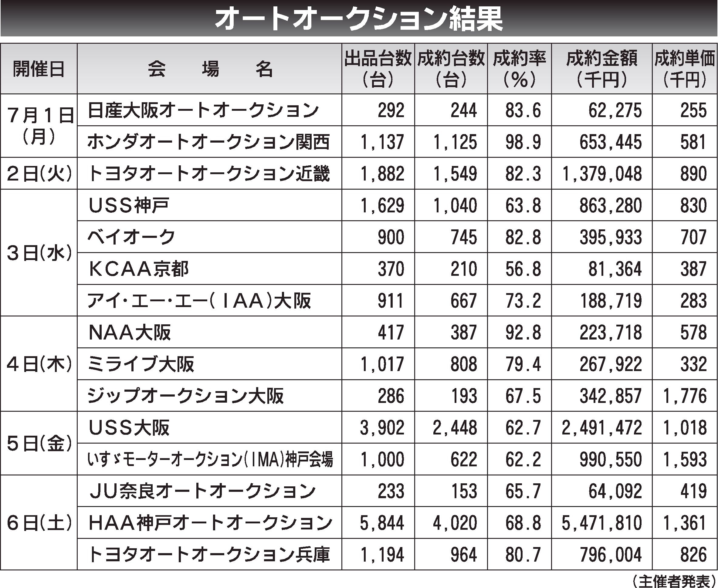 〈オートオークション結果〉近畿地区 2024/7/1~6