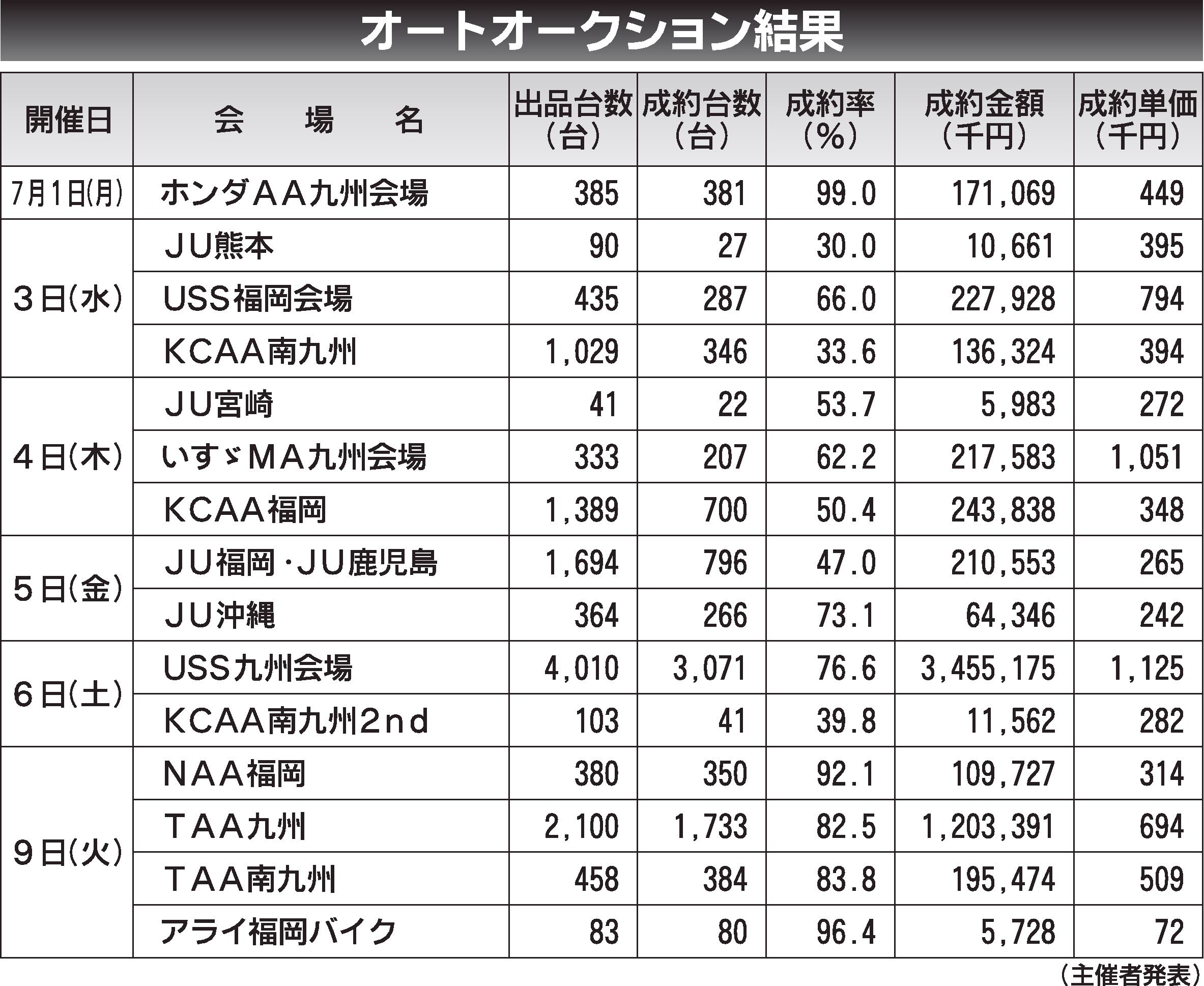 〈オートオークション結果〉九州地区 2024/7/1~9