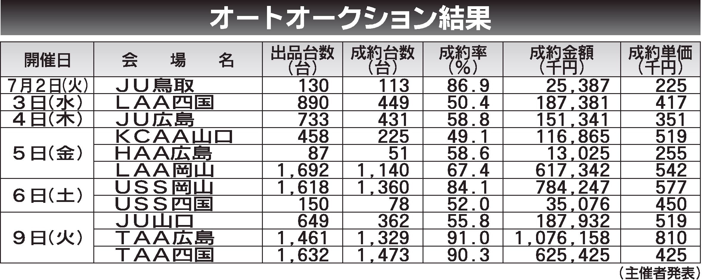 〈オートオークション結果〉中四国地区 2024/7/2~9