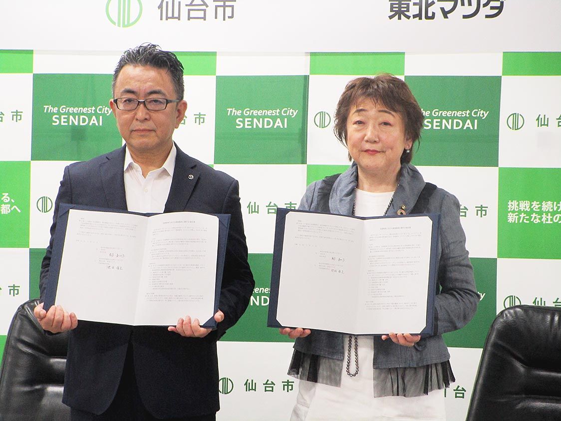 【仙台】東北マツダ(池田保之社長)は、仙台市役所で同市と「災害時等における車両提供に関する協定」を締結した。発災時にクリーンディーゼル車を貸与して、初動対応の迅速化につなげてもらう。同社が自治体と協定を締結するのは初となる。 マツダは、軽...