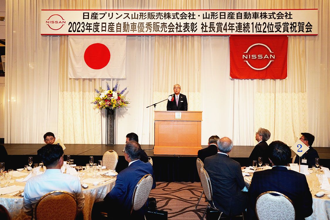 【山形】山形日産グループ(小関眞一社長)は、日産自動車最優秀社長賞を4年連続で受賞した日産プリンス山形(同)と山形日産(同)の祝賀会を山形市で開催した。小関社長をはじめ、役員、社員、取引先関係者ら総勢約500人が参集。両社の快挙をたたえ祝...