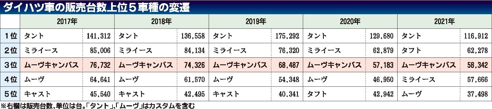 ムーヴキャンバスは2016年に初代を発売したモデル。ハイト系のサイズ感とスライドドアの使い勝手、特徴的なデザインが支持され、累計39万台を販売してきた。派生車種ではあるものの、ダイハツのラインアップの中で3番目に売れている同社の主力モデルだ。