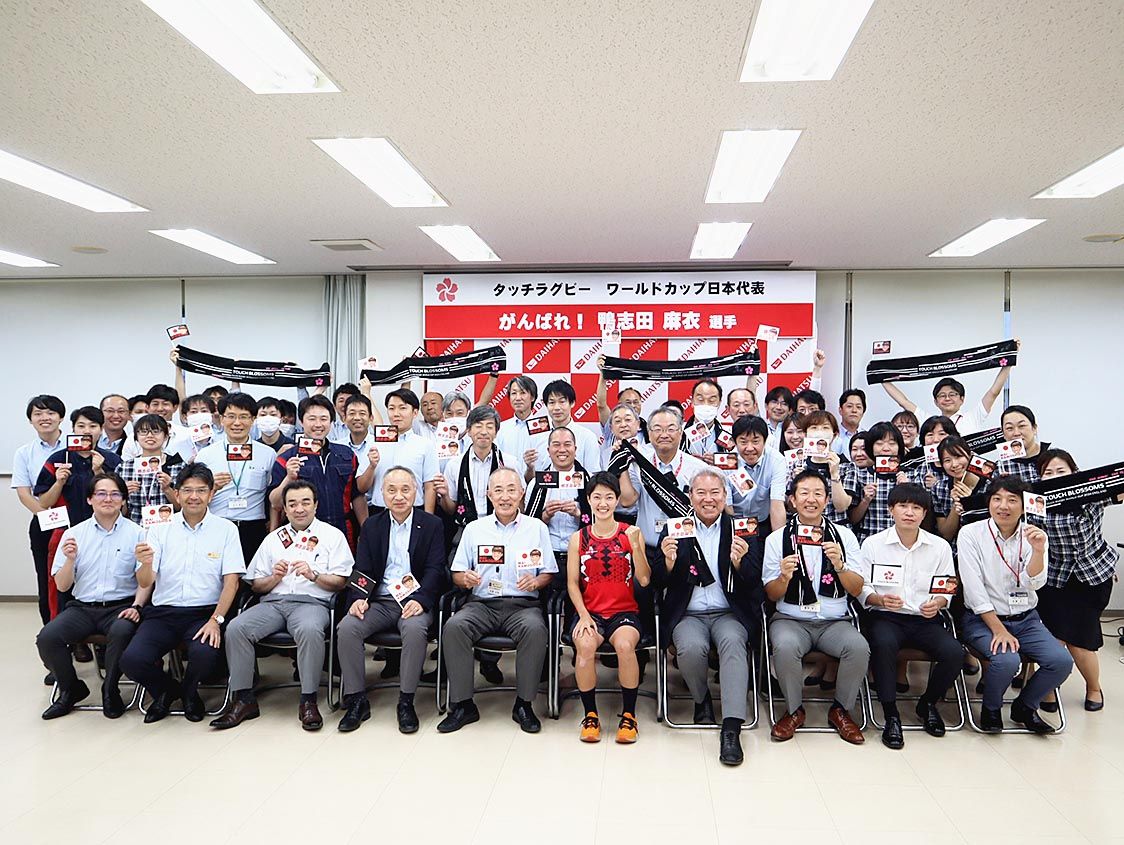 ダイハツ千葉(近藤治郎社長)は、同社の人財開発グループに所属する鴨志田麻衣さんが、イングランドのノッティンガムで開催されるタッチラグビーのワールドカップ(W杯)に、女子日本代表として出場するのを励ます壮行会を開いた。 タッチラグビーは、相...