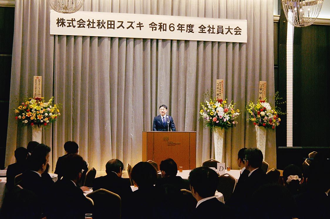 【秋田】秋田スズキ(石黒佐太朗社長)は秋田市で令和6年度「全社員大会」を開催した。全拠点から約200人が出席し、自社の歩みを振り返りながら次世代に向けた思いを伝えた。また、プログレスの大久保政彦氏による特別講演や創業70周年を記念して社員...