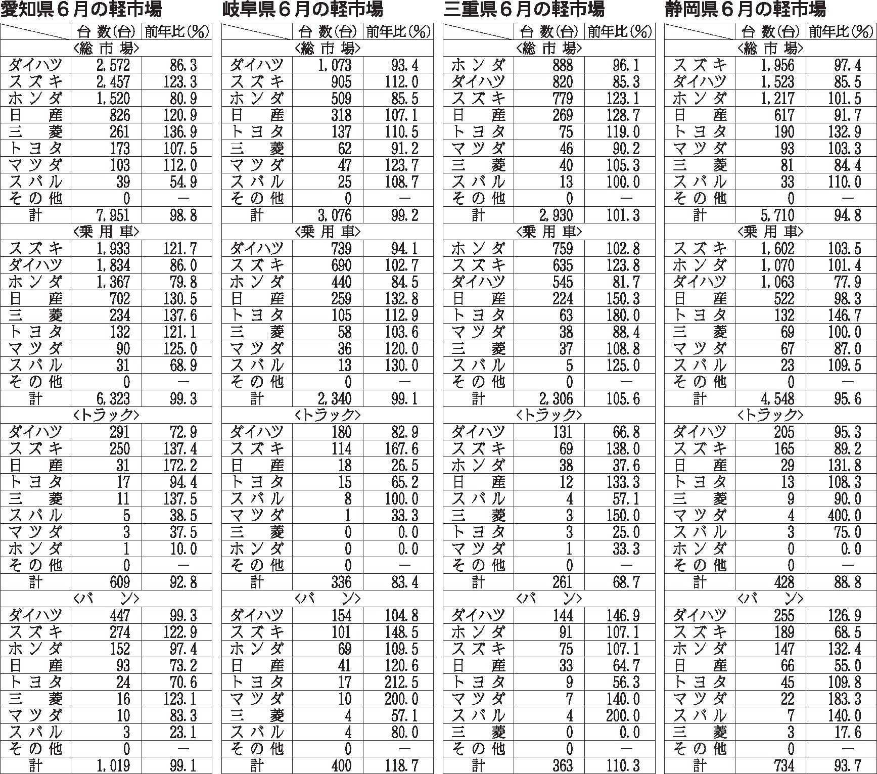 〈中部4県6月の軽市場〉愛知県/岐阜県/三重県/静岡県