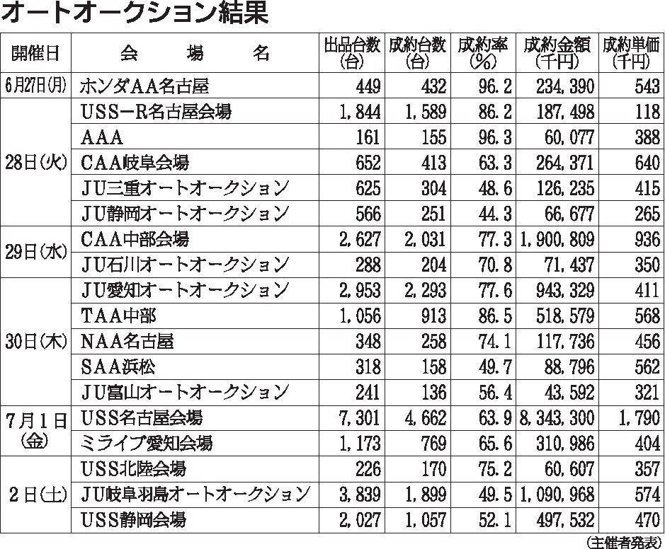 〈オートオークション結果〉中部地区 2022/6/27~7/2