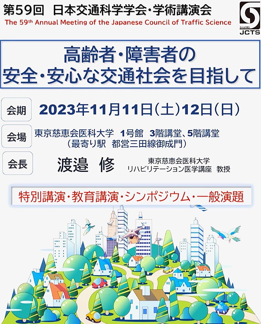 次回の「第59回日本交通科学学会・学術講演会」は2023年11月11、12日に東京慈恵会医科大学(東京都港区)で開催される。テーマは「高齢者・障害者の安全・安心な交通社会を目指して」に決定した。 大会長を務める渡邉修理事(同大学附属第三病...