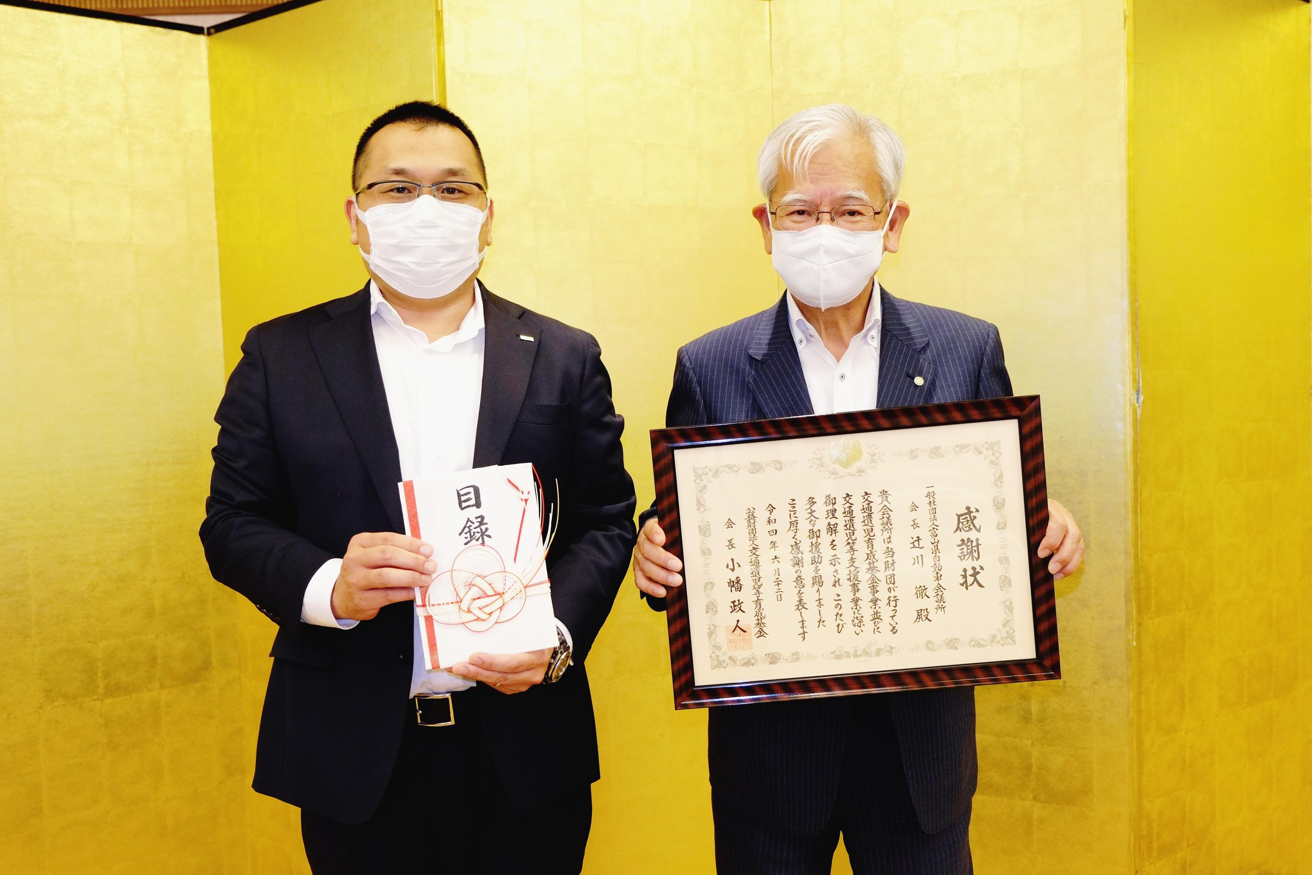 【富山】富山県自動車会議所(辻川徹会長)は、交通遺児の生活や学業援助などを趣旨とする支援金10万円を拠出し、自動車事故対策機構富山支所(中野知亮支所長)を通じて交通遺児等育成基金に寄付した。 富山市内のホテルで同日、寄贈式が行われ、辻川会...
