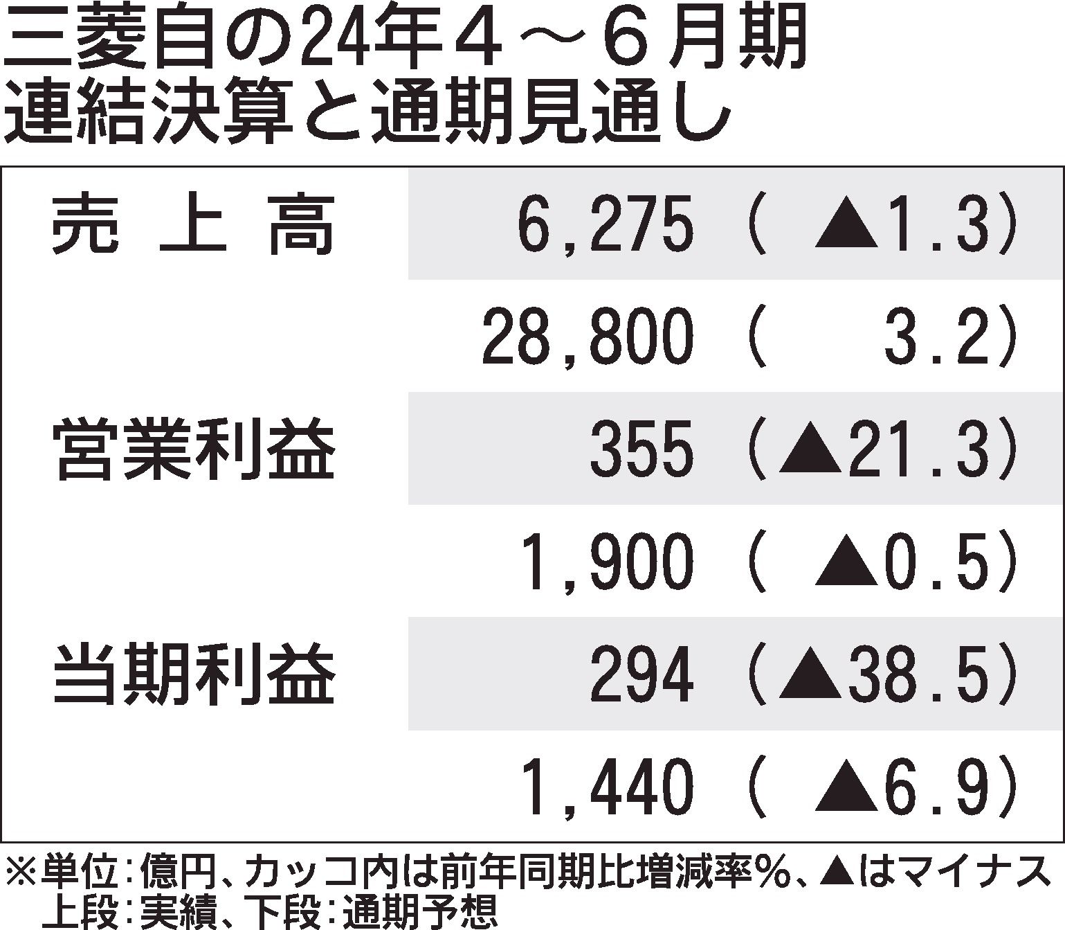 三菱自、2024年4~6月期業績 タイ需要低迷で減収減益