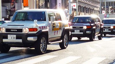 東京トヨタ(川島新一社長)は、新型「FJクルーザー」10台を使い、銀座、新宿、渋谷など都内繁華街でパレードを行った。8~10日に「新春お年玉フェア」と併せて実施した「FJクルーザー試乗会」の案内告知を車体に描いて道行く人々にアピールした。...