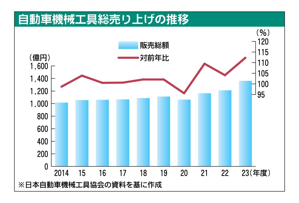 日本自動車機械工具協会(機工協、柳田昌宏会長)がまとめた2023年度の自動車機械工具販売実績は、総売上金額が前年比12.3%増の1361億900万円と3年連続で増加した。1300億円超えは27年ぶり。整備市場は母体となる保有台数が高い水準...