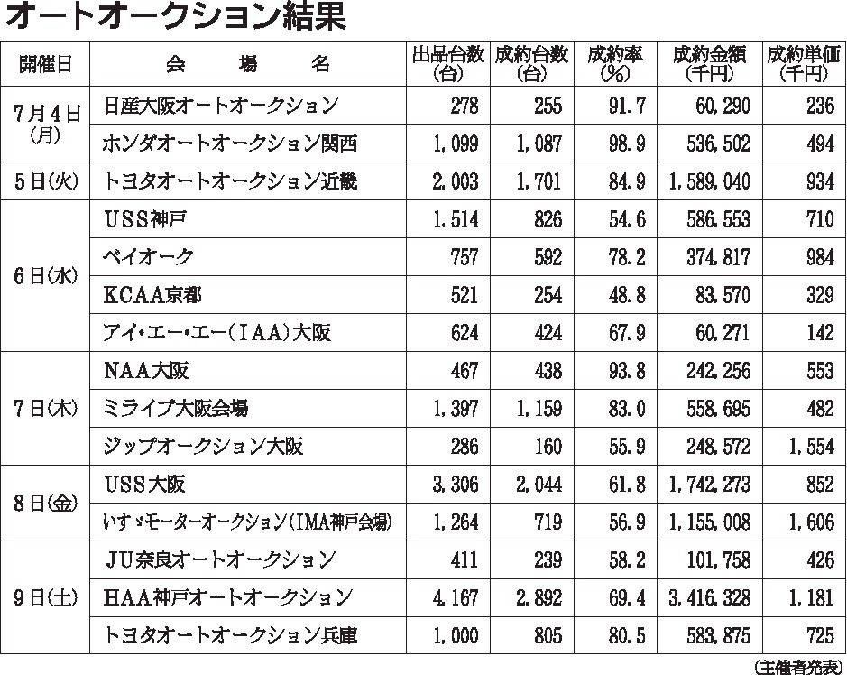 〈オートオークション結果〉近畿地区 2022/7/4~9