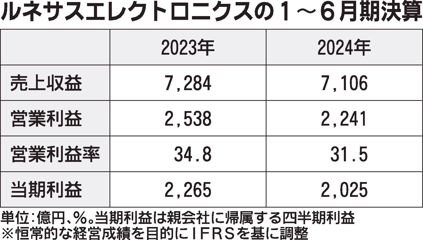 ルネサスエレクトロニクスは25日、2024年7~9月期連結業績の営業利益率が前年同期比7.4㌽減の27.5%に下落する見通しを発表した。自動車向けが当初想定していたよりも需要が弱含んでいるのに加え、産業・インフラ・IoT向けの回復が遅れて...