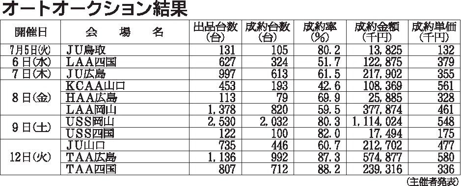 〈オートオークション結果〉中国・四国地区 2022/7/5~12