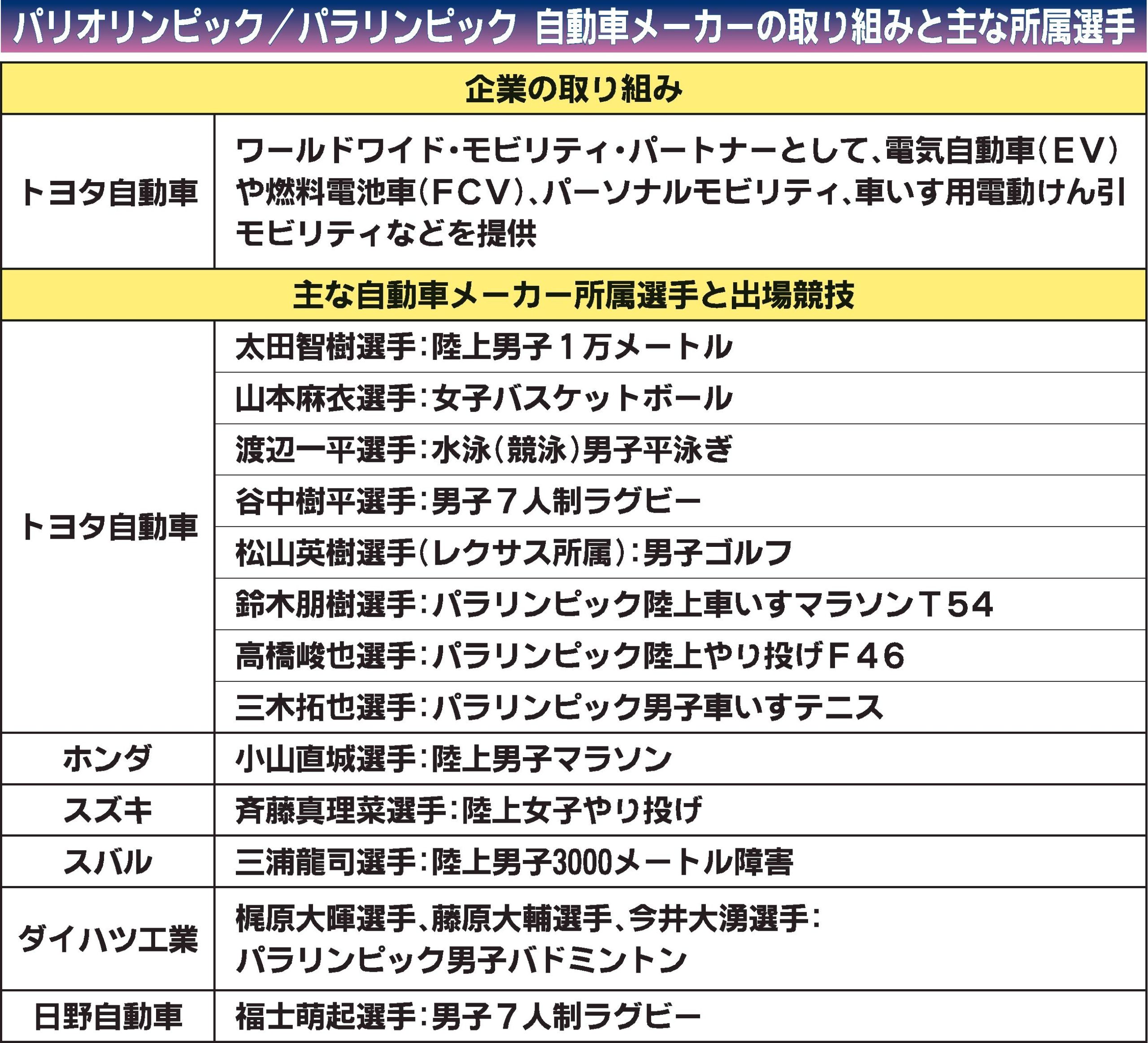 仏パリで26日に開会式が開かれた「パリ2024オリンピック」では自動車メーカーをはじめ各社所属アスリートたちの活躍が期待される。またトヨタ自動車は「ワールドワイド・モビリティ・パートナー」として車両を提供し、選手や関係者らの移動を支える。...