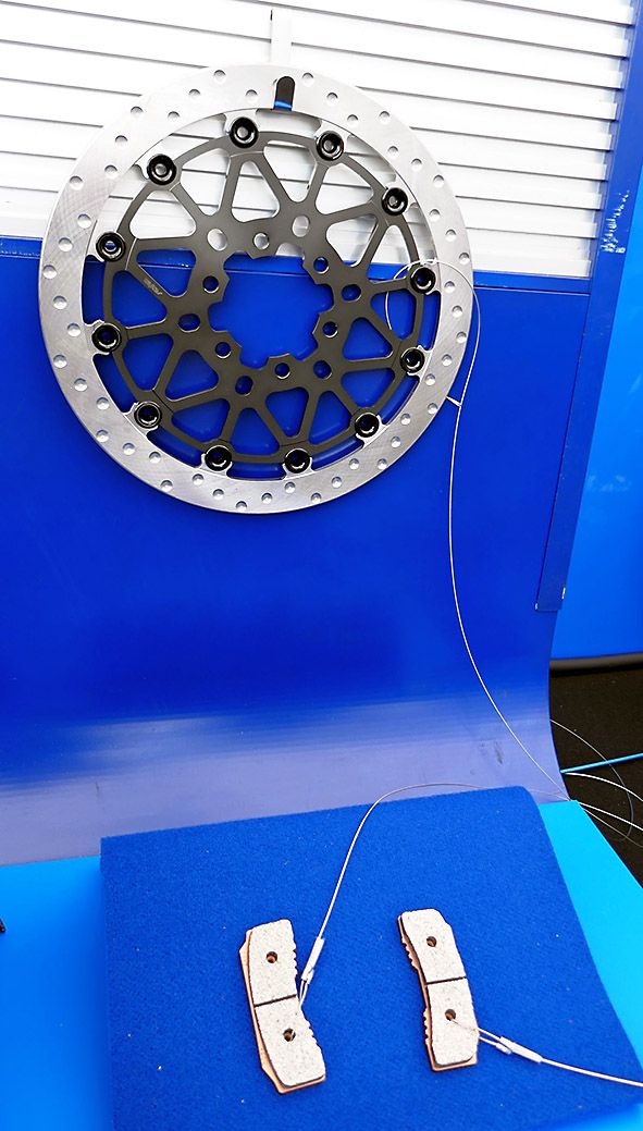 一例がフロントブレーキだ。サンスター技研が供給し、ブレーキディスクの製造工程における熱処理を廃止し、製造時の二酸化炭素(CO2)排出量を半減させた一方で「ライダーからは『思ったような減速ができない』と話があった」(田中本部長)という。スズキとサンスター技研で材料や生産プロセスの見直しなどを重ね、競技車両に使える性能にまでこぎ着けた。