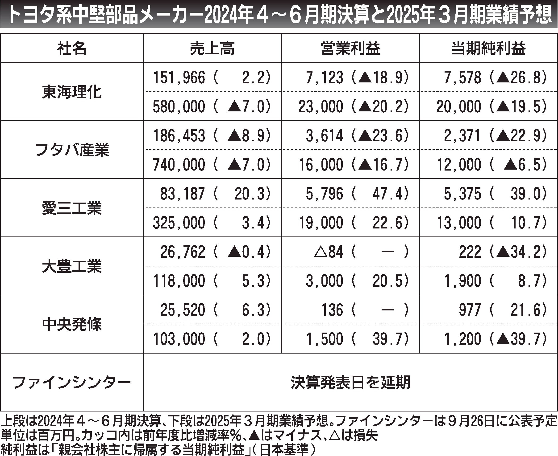 トヨタ自動車系中堅部品メーカー5社(発表を延期したファインシンターをのぞく)が30日発表した2024年4~6月期連結業績は、円安影響もあり3社が増収を確保した一方、認証不正に伴う車両生産停止や中国事業の不振を受け、3社が営業減益(うち1社...