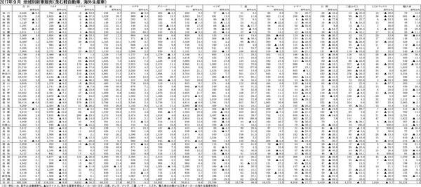 2017年9月の地域別新車販売台数は、全体が前年同月比3・9%増と堅調だったことから大半の地域が前年実績を上回った。伸び率が最も高かったのは室蘭で唯一2桁増(前年同月比11・2%増)を記録した。 大市場では東京(同4・9%増)のほか千葉、...