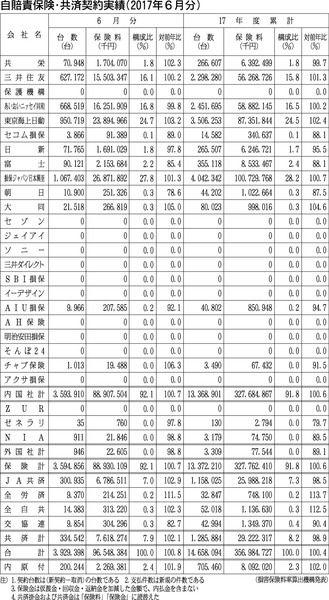 【自賠責保険・共済契約実績(2017年6月分)】