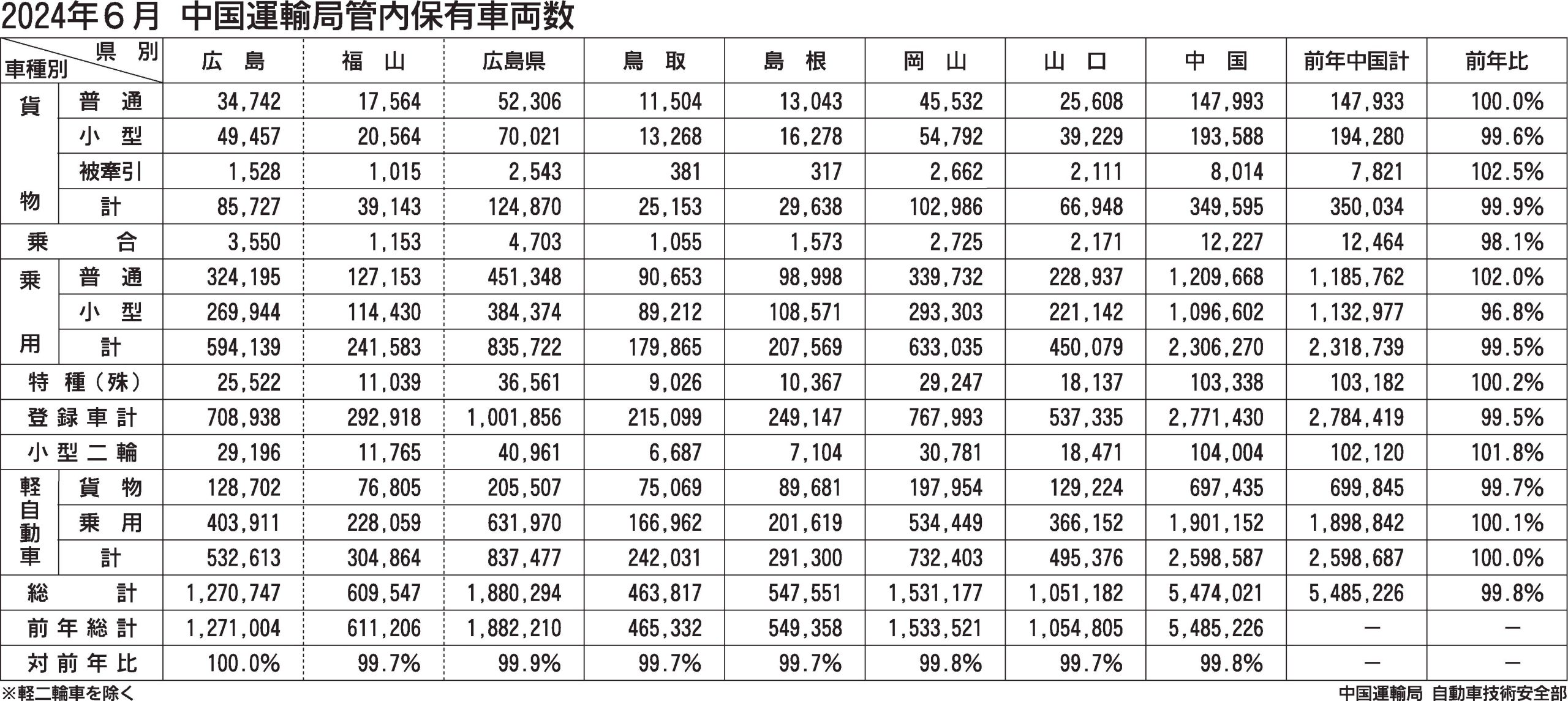 〈2024年6月 中国運輸局管内保有台数〉