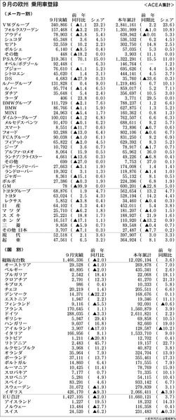 17年9月の欧州乗用車登録は、9月までの累計で主要グループの多くが前年実績を上回った。VWグループは同2・2%増、BMWグループは同1・2%増と堅調。ルノーグループは同6・7%増、ダイムラーグループ同6・6%増、FCAグループ同8・2%増...