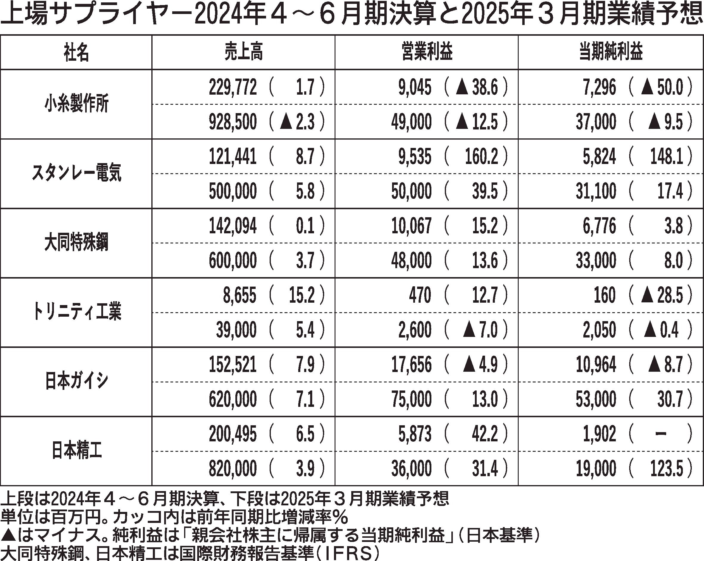 〈上場サプライヤー2024年4~6月期決算と2025年3月期業績予想〉(8/2付)