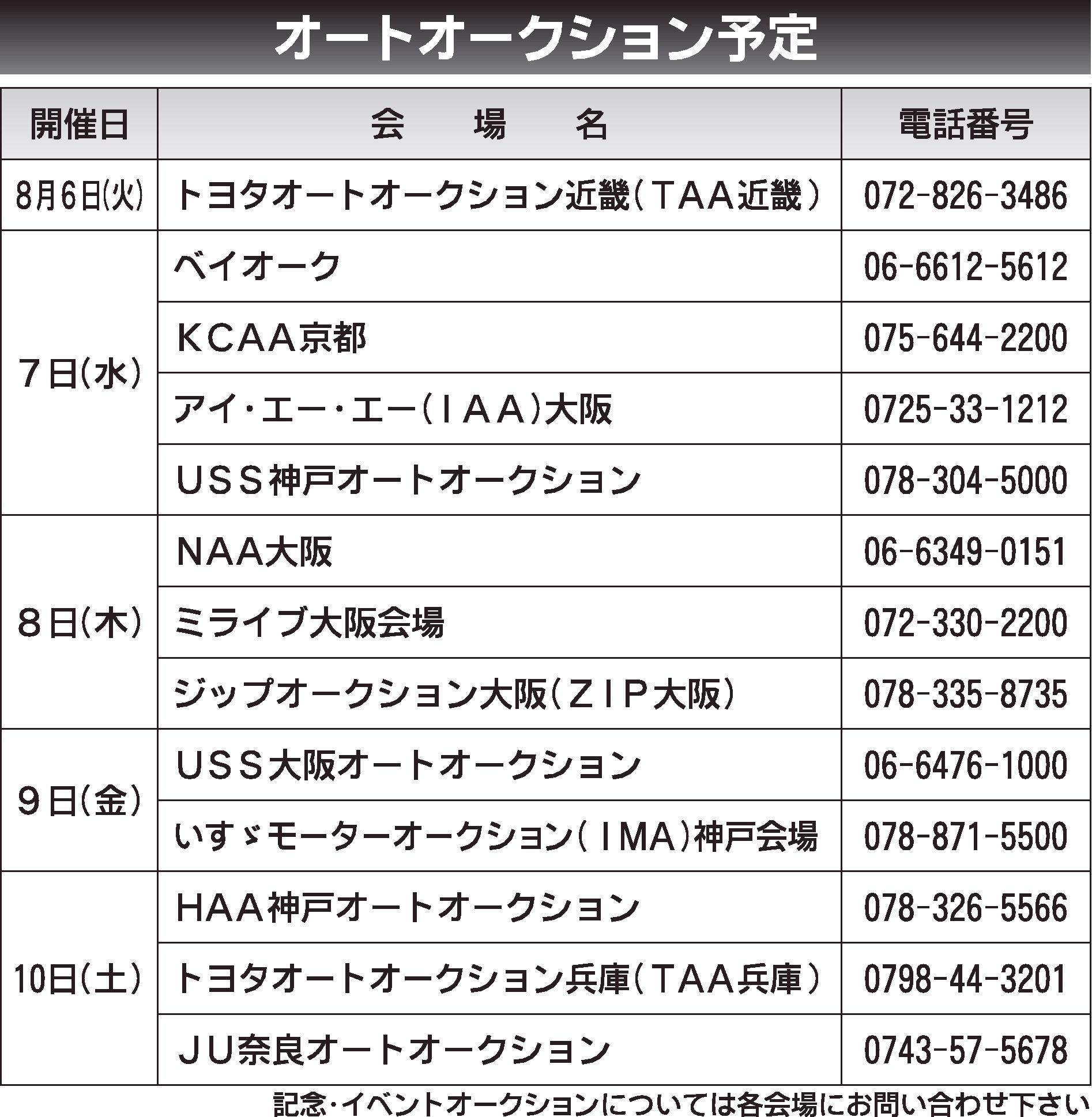 〈オートオークション予定〉近畿地区 2024/8/6~10