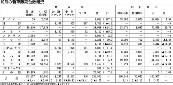 【10月の新車販売台数概況】