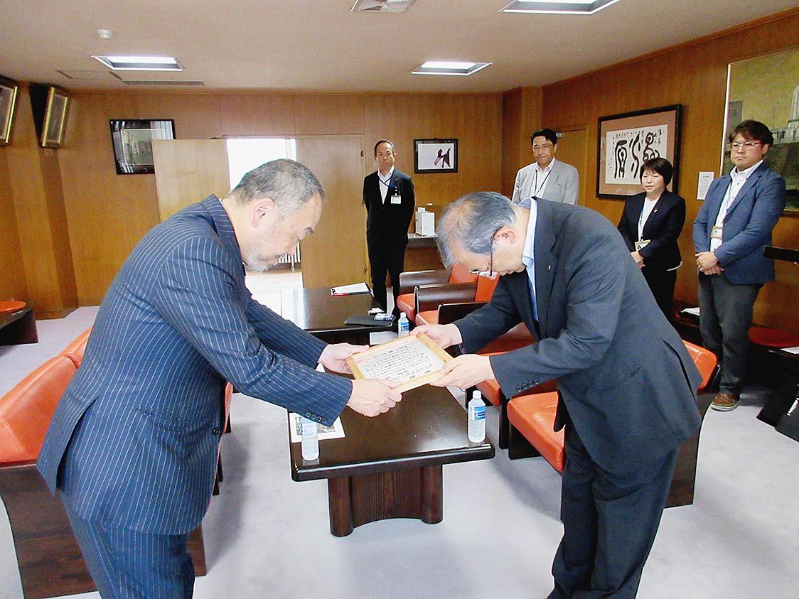 【釧路】自販連釧路支部(坂根篤支部長)は、15年前から植樹用苗木を寄贈してきたことに対し、釧路市から表彰を受けた。7月31日に釧路市役所で感謝状の授与式が行われ、秋里喜久治副市長から坂根支部長に感謝状が手渡された。 同支部では道東地区の緑...