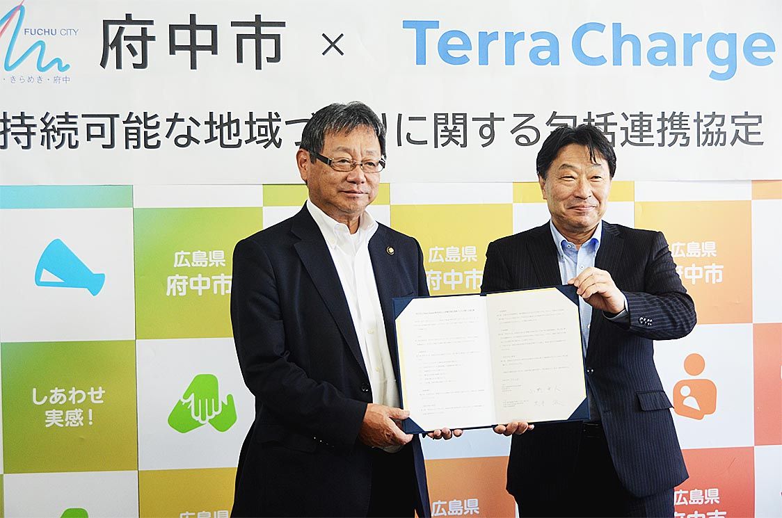電気自動車(EV)の充電インフラ事業を展開するテラチャージ(徳重徹社長、東京都港区)は、広島県府中市と「持続可能な地域づくりに関する協定」を締結し、府中市役所で締結式を行った。同社が広島県内の自治体と協定を締結するのは初めてで、市内の公共...