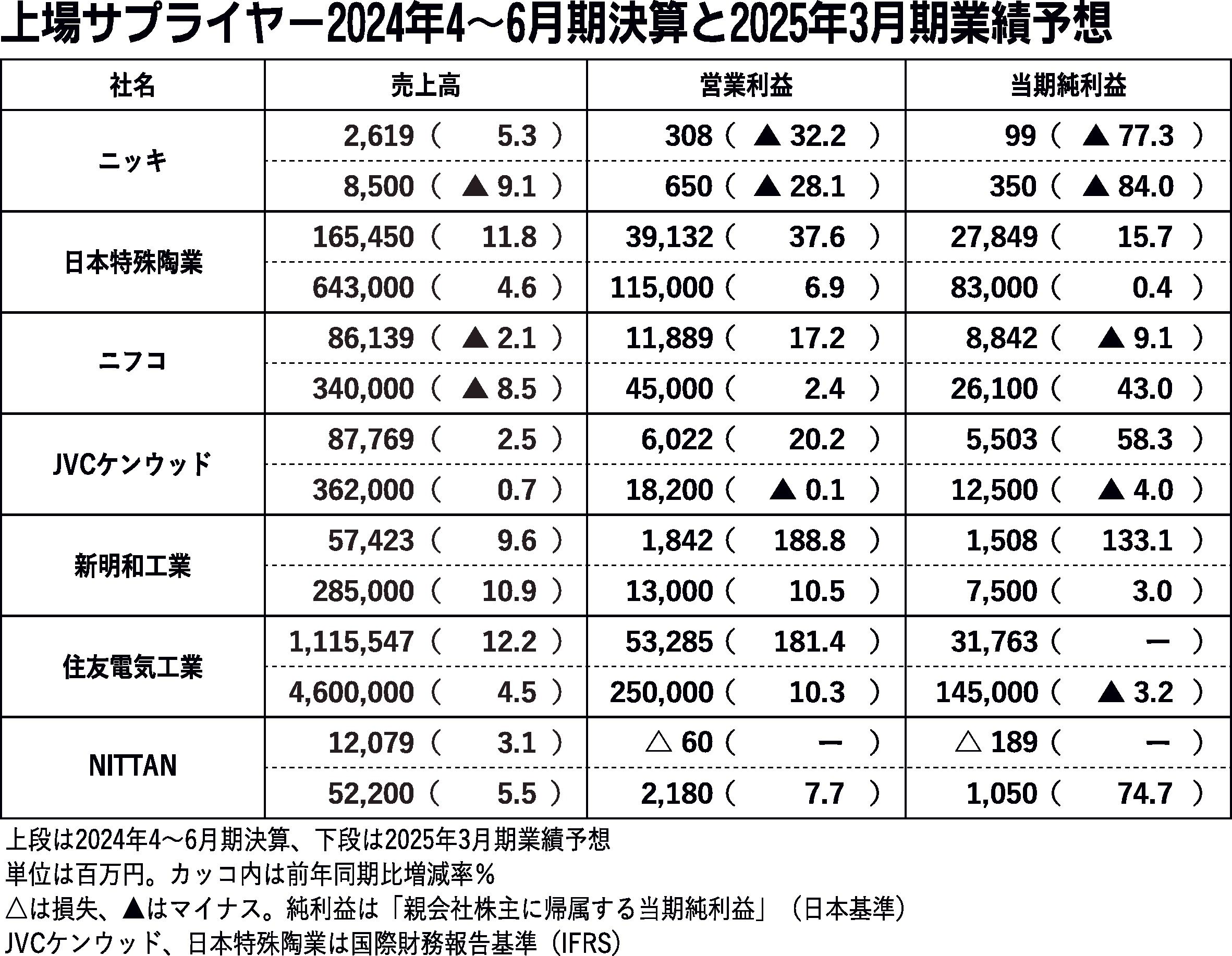 〈上場サプライヤー2024年4~6月期決算と2025年3月期業績予想〉(8/8付)