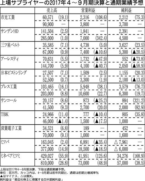 【上場サプライヤーの2017年4~9月期決算と通期業績予想】