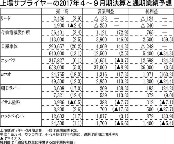 【上場サプライヤーの2017年4~9月期決算と通期業績予想】