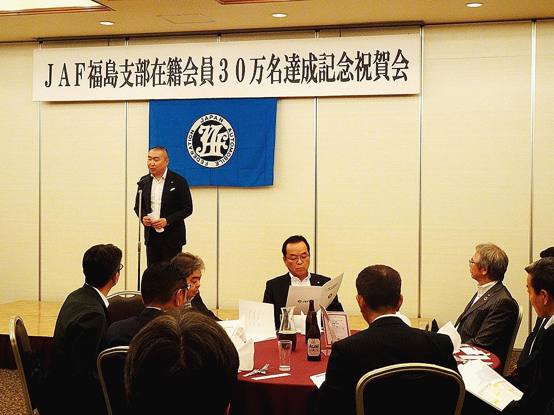 【福島】日本自動車連盟(JAF)福島支部(大沼健弘支部長)は、福島市内で「在籍会員数30万名達成記念祝賀会」を開き、ディーラー代表者と推進幹事、事務局など合わせて37人が出席した。大台突破の節目を喜び合い「ゴールではなく一つの通過点として...