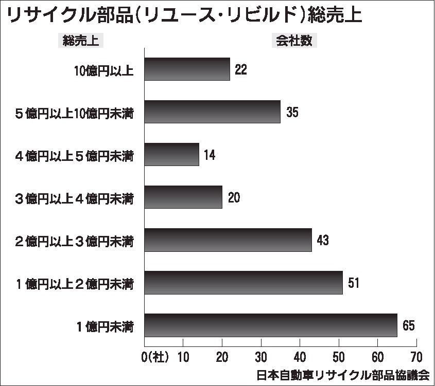日本自動車リサイクル部品協議会(JAPRA、佐藤幸雄代表理事)がまとめた2021年の「会員社市場規模アンケート調査」によると、国内向けリサイクル部品の1社当たりの平均売上高は前年比11・2%増の2億8006万円と3年ぶりに増加に転じた。し...