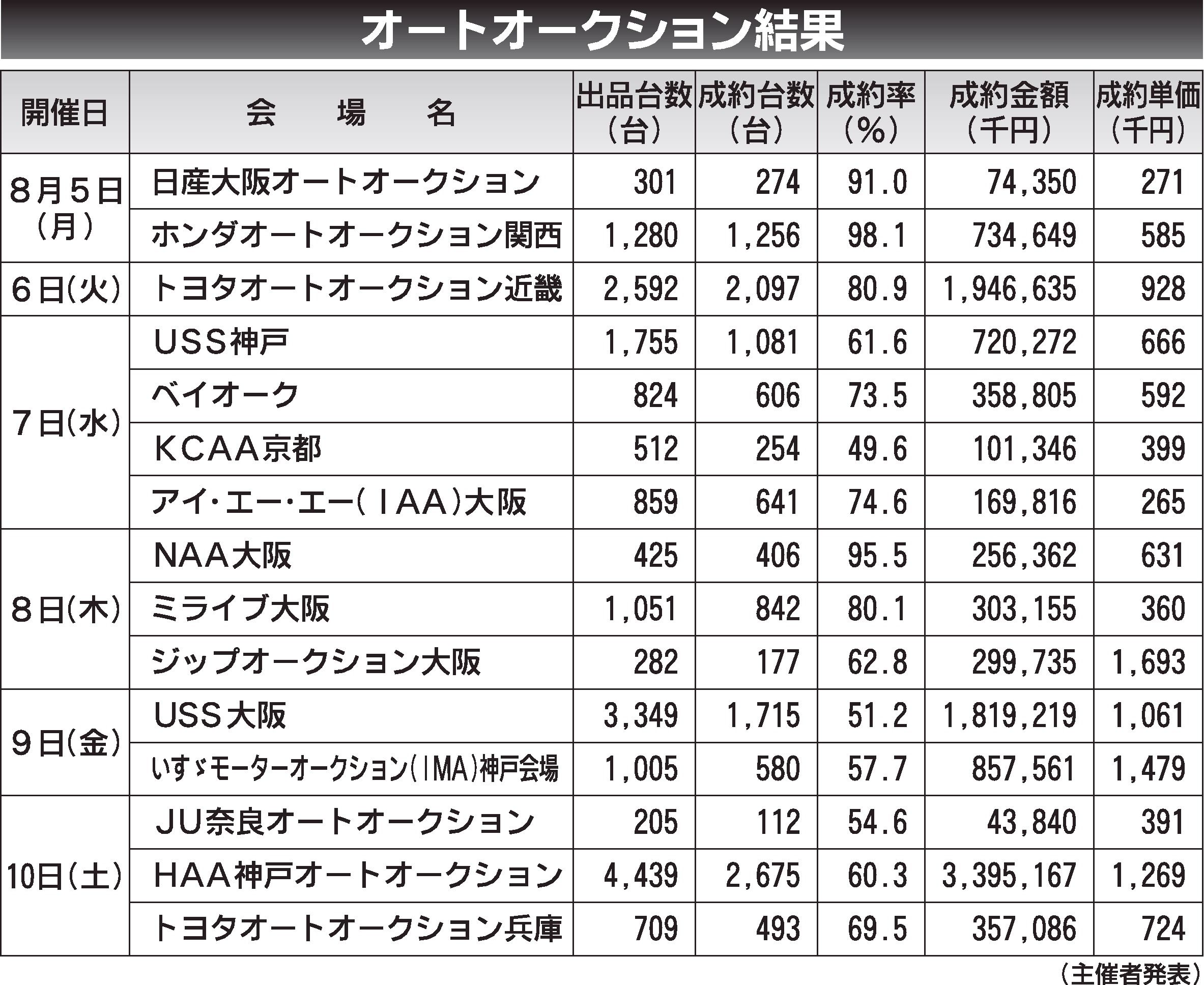 〈オートオークション結果〉近畿地区 2024/8/5~10