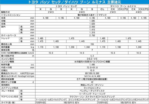 「広くて、使いやすい、7シータースタイリッシュ コンパクト」が開発テーマ。“子育て女性”をメーンターゲットに、ゆとりの室内空間とともに快適に運転を楽しめる装備を施した。 トヨタ「パッソ セッテ」、ダイハツ「ブーン ルミナス」ともに全長41...