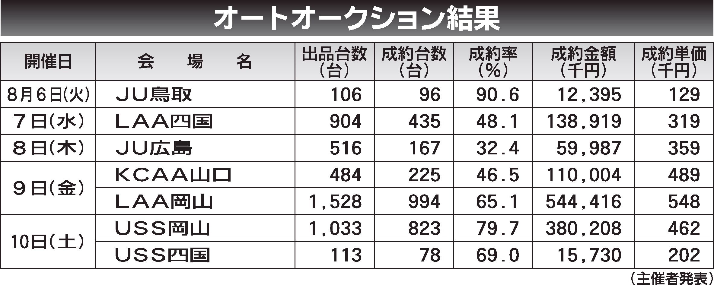 〈オートオークション結果〉中・四国地区 2025/12/17~23