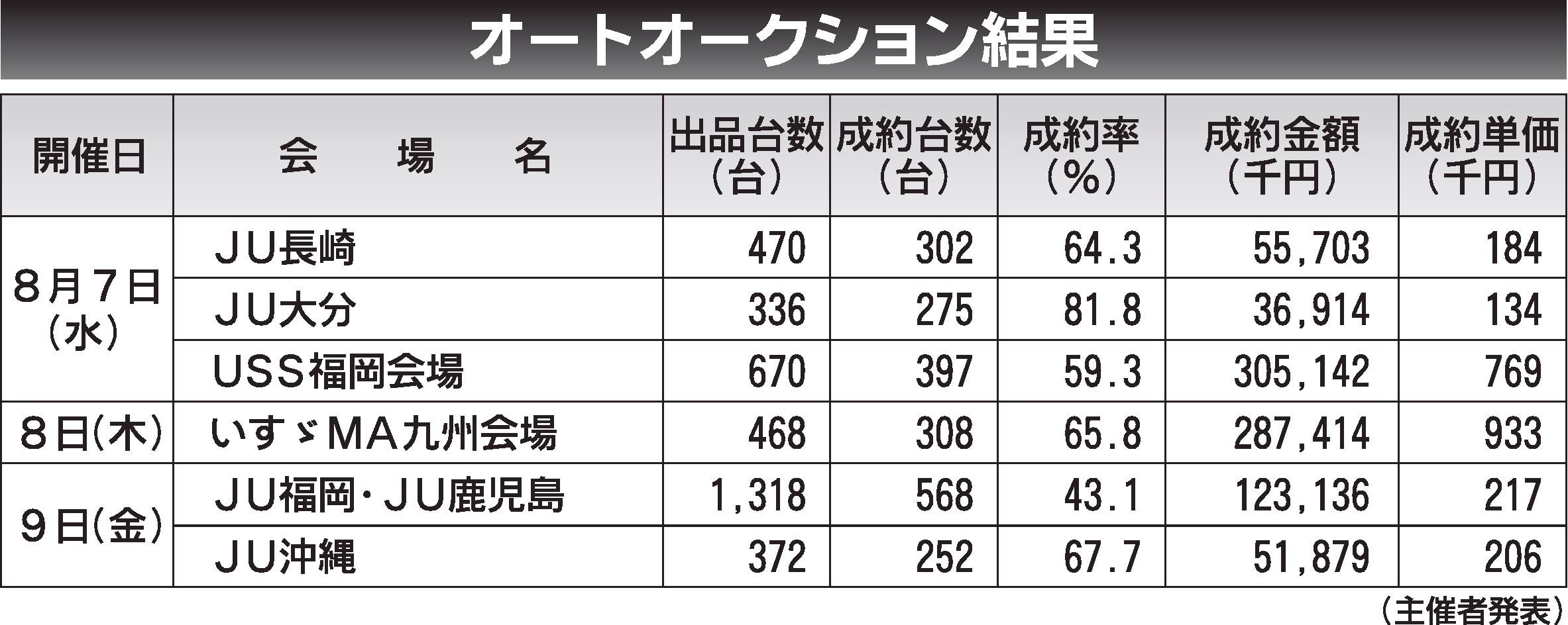 〈オートオークション結果〉九州地区 2024/8/7~9