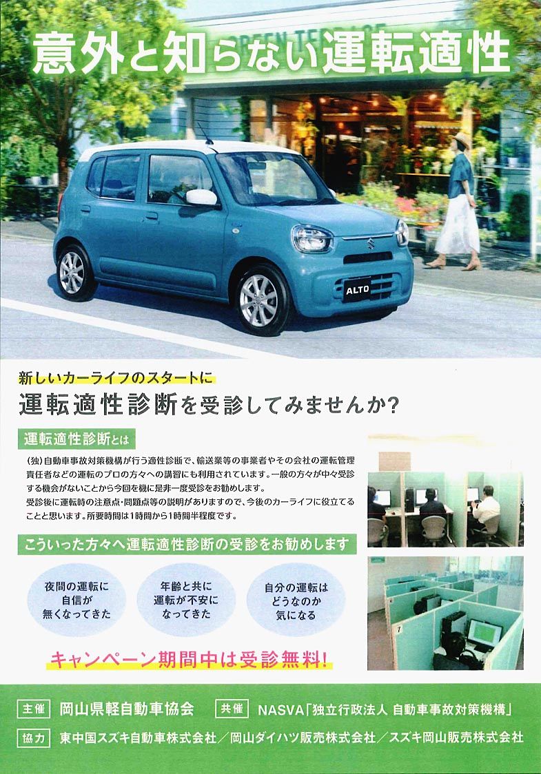 岡山軽協とNASVA、協力して交通安全キャンペーン 適性診断を事故防止のきっかけに